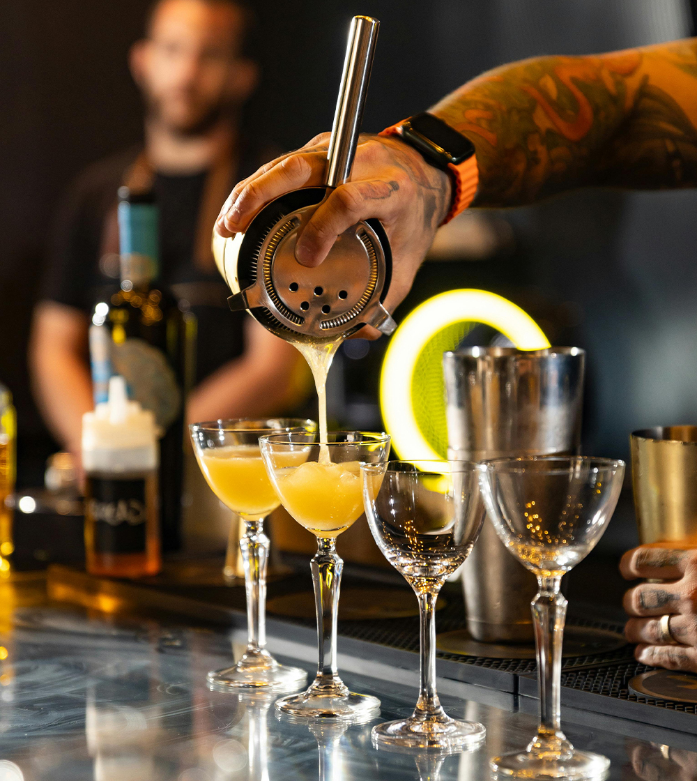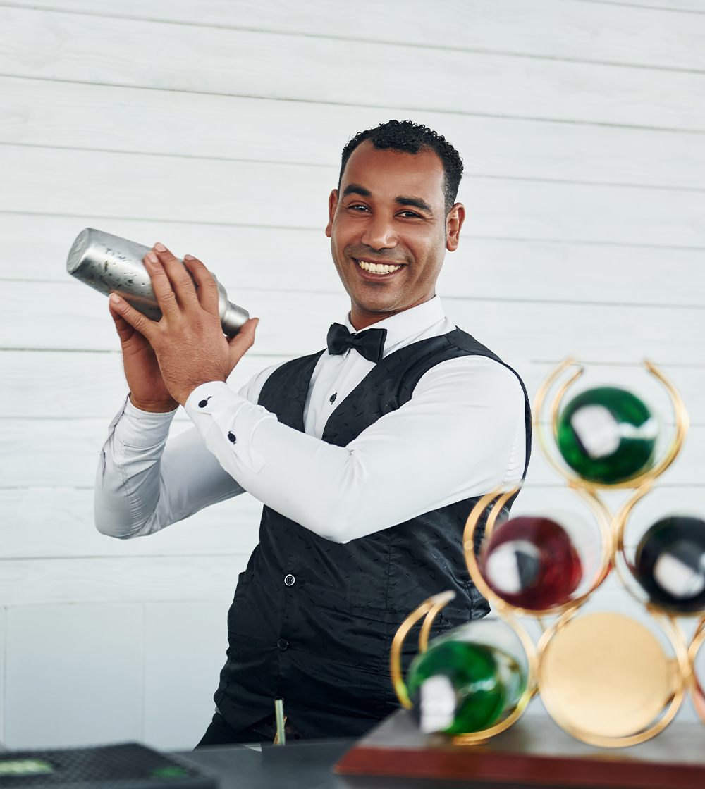 They keep guests entertained while expertly preparing their preferred beverages. They have the ability to juggle, throw, and catch bottles, and perform other mixing tricks.
