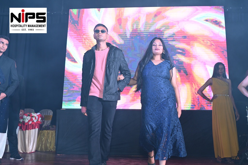 On August 2, 2023, NIPS Hotel Management celebrated its 31st Foundation Day, marking over three decades of excellence in hospitality education. The celebration commenced with a Lamp-lighting Ceremony, and Ganesh Vandana, creating an auspicious ambience for the evening. As a part of the main events, we paid tribute to legendary poet Rabindranath Tagore with a series of performances by our students. Their captivating performance brought life to our rich culture, knowledge, and spirituality. The evening reached its peak with an exceptional performance by alumnus Debangan Mukherjee. His melodious voice and stage presence absorbed everyone’s attention adding a touch of nostalgia to the occasion. Next was a set of dance performances, and rampwalk shows by our senior and junior students energizing the audience.