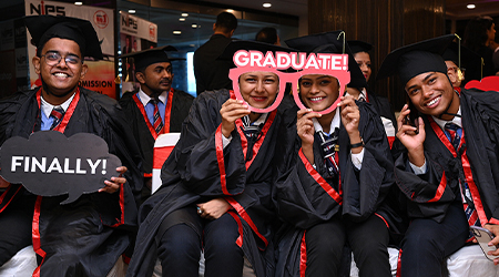 The Convocation Ceremony at NIPS Institute of Hotel Management is a proud and defining chapter in every student’s academic journey. This photograph, taken on the lush campus lawn, reflects the joy, excitement, and sense of accomplishment as graduates celebrate the completion of their programs in the presence of their peers and mentors. With their convocation caps soaring high, the students symbolise not just the end of an academic phase, but the beginning of new aspirations and professional opportunities.