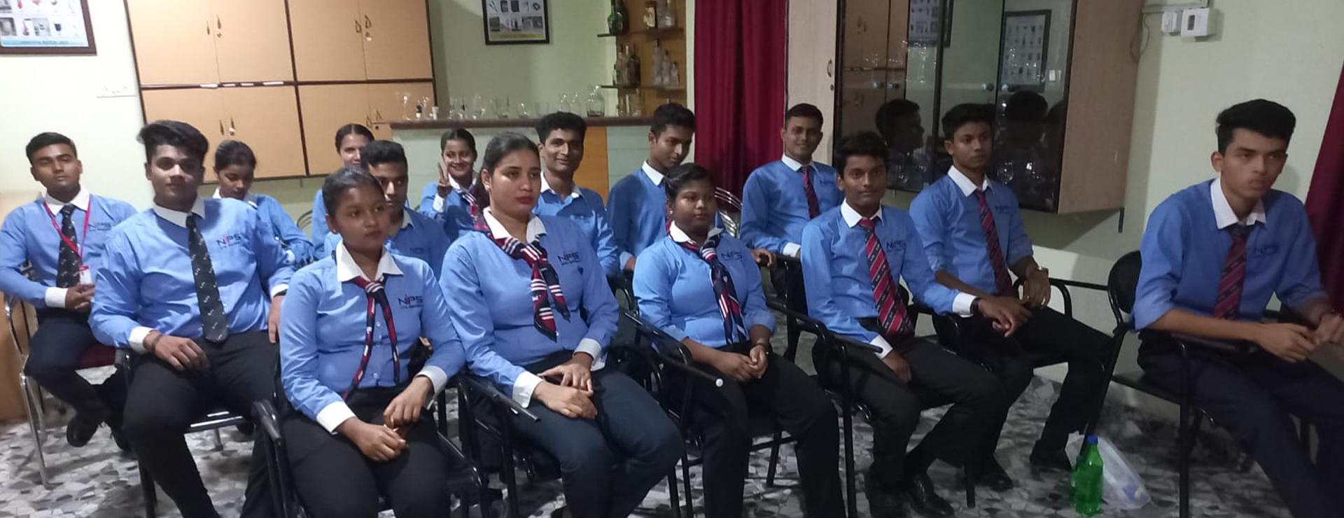 This photograph captures the students of NIPS Institute of Hotel Management, Bhubaneswar actively participating in a focused workshop on Advanced Food & Beverage Service. Designed to enhance technical knowledge and operational proficiency, the session provided learners with in-depth insights into contemporary service standards, guest handling techniques, and the evolving expectations of the hospitality industry.