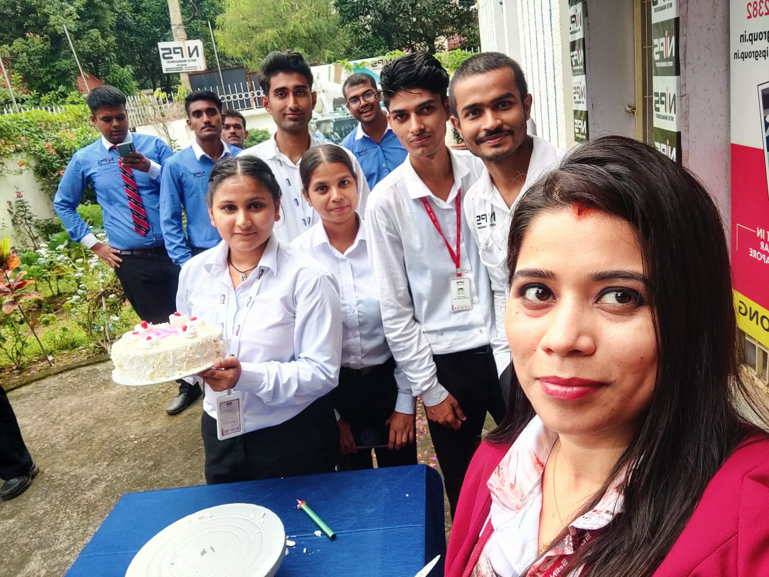 NIPS Hospitality Management Institute encourages collaborative student-teacher relationships across our four campuses. As the fruit of constant practices, our 1st and 2nd years at NIPS Institute of Hotel Management, Ranchi, organized a surprise cake-cutting ceremony to express their gratitude and appreciation for their teachers on Teacher’s Day. On the birth anniversary of Dr. Sarvepalli Radhakrishnan, we honour the dedication, guidance, and support of the teaching staff. Our students secretly planned the entire event, arranging for a beautifully decorated cake and inviting the faculty members under the pretext of a regular meeting. Upon arrival, the teachers were greeted with cheers and heartfelt appreciation, creating a joyful and emotional atmosphere. The celebration began with the Center Head and faculty members cutting the cake with smiling faces, laughter, and gratitude.