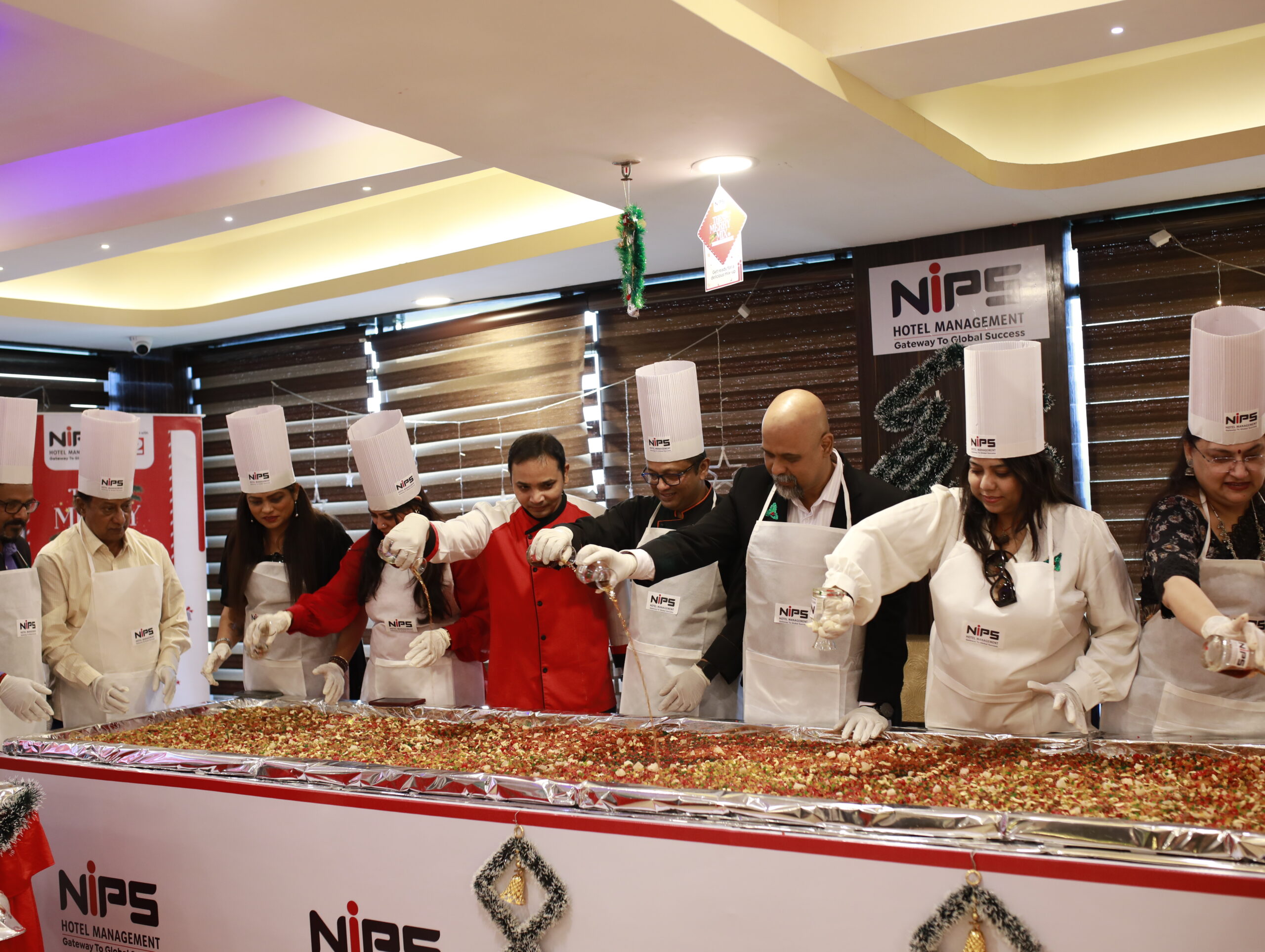 We received many guests from Kolkata, including some prominent figures, escorted into the beautifully decorated banquet hall. Once all the guests had arrived, we jumped into our main eventโ”The Cake-Mixing Ceremony.” It’s a long-held Christmas tradition at NIPS that symbolises the beginning of the holiday season. Our directors and guests took the centre of the stage to mix dried fruits, nuts, and spices with aromatics. After the cake mixing, we treated our guests to lavish High Tea that brought a great opportunity for everyone to mingle, exchange stories, and enjoy the festive atmosphere. We had a special appearance, Santa Claus handing out chocolates and candies and posing for photos with guests, making the program lively and joyous. The event was a true celebration of Christmas, with laughter, warmth, and good food creating an unforgettable experience for all.