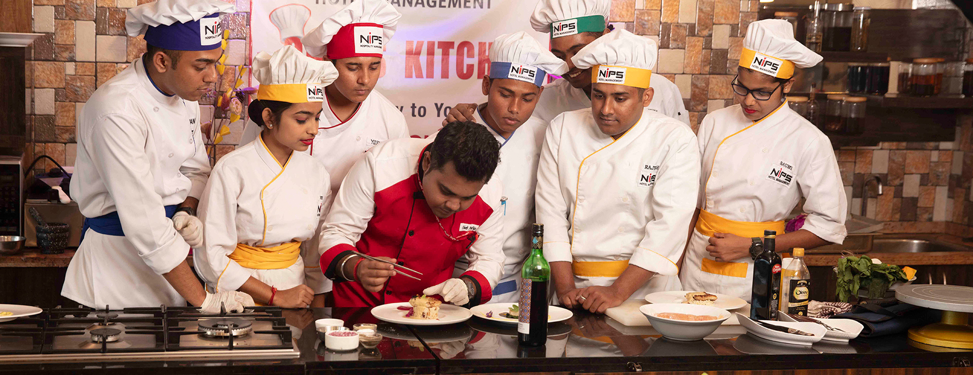 NIPS Institute of Hotel Management continues to emphasize experiential learning, and this photograph beautifully captures that commitment in action. Here, culinary students gather around their mentor, Celebrity Chef Pratip Nath, in a hands-on kitchen training session, observing the finer techniques of plating and presentation. The atmosphere reflects focus, discipline, and the spirit of collaborative learning as each student pays close attention to the demonstration unfolding before them.